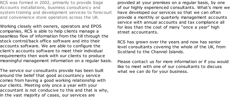 “RCS helped us to evaluate our group management structure and implemented new back-office and accounting procedures. Through Mark, RCS have become an integral part of the management process”